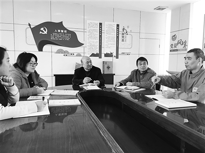 | 公司工会干部正在研究工会工作(图中为王铭)。记者潘仙德 摄 |