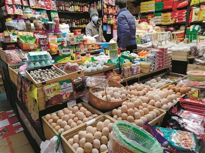 | 杭州红石板农贸市场内鸡蛋等食品供应充足。记者张浩呈 摄 |