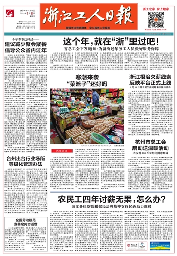 浙江工人日报 一版要闻 00001 浙江根治欠薪线索反映平台正式上线 2021-01-08 2 2021年01月08日 星期五