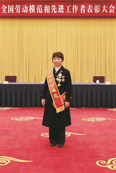 | 朱三莲在北京接受表彰。 记者邹伟锋 摄 |
