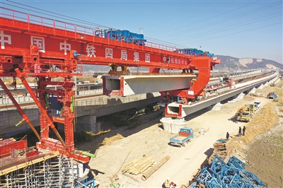 昨日,杭绍台铁路与甬台温铁路温岭站北端下行联络线特大桥最后一扣箱梁顺利架设。