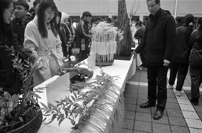 酒店、旅游专业比赛的是“中餐折花”:每个选手面前放着6只大小高低不一的酒杯,一摞毛巾,要求在规定时间里折出6种不同的餐巾花。选手们训练有素,以饱满的热情和娴熟的技能,按规定时间和要求完成了各自的比赛项目。巾花挺拔,造型美观,花型逼真,平常到酒店进餐熟视无睹的宴会摆台和折花,竟然充满了艺术感和文化情趣。