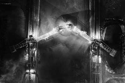 1月19日,宁波舟山港穿山港区光明码头灯火通明,装载着6.6万吨俄罗斯动力煤的“班德斯”货轮顺利靠泊港口,现场工作人员立即投入了紧张的抢卸作业。图为两台起重机械正“挑灯夜战”,源源不断地将俄罗斯动力煤堆放到场地。