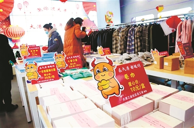 据介绍,“大港制造”年货会上的精美礼品由北仑区慈善总会、大港工业园区华和服饰、天亚服装、德锦纺织等十余家企业赞助,同时,大港工业社区总工会积极开展园区志愿者编织爱心围巾、支部书记个人捐赠等形式筹集物资。物资从家居实用性、时用性以及年龄层出发,包括各式儿童及成人服装、毛毯、按摩垫、防疫和保暖物资、文具、包装箱等物品共2000余件。