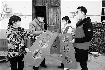 日前,由开化农商银行与县书法家协会联合举办的“迎春送福进万家”活动在开化音坑乡儒山村拉开序幕,书法家们现场为村民挥毫泼墨写春联。同时根据疫情防控的需要,农商行的职工们把一副副春联和福字送到农户门口。