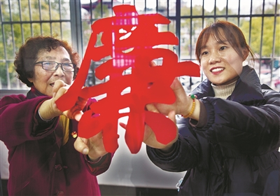 近日,衢州市柯城区府山街道府山社区党员干部一起创作廉政主题剪纸作品,并把一幅幅“廉”字窗花,送到党员干部家中,以此警醒大家过一个欢乐廉洁年。图为党员干部们在党员家中贴“廉”字窗花。