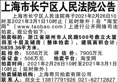受委托,本公司于2021年2月4日9:00至11:00止(延时除外)在“诚拍网”网络拍卖平台(www.chengpw.com)上进行公开拍卖,现将有关事项公告如下: