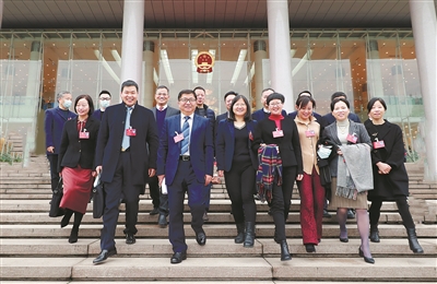 | 昨日上午,省政协十二届四次会议闭幕后,省政协工会界别委员们意气风发地走出省人民大会堂。记者邹伟锋 摄 |