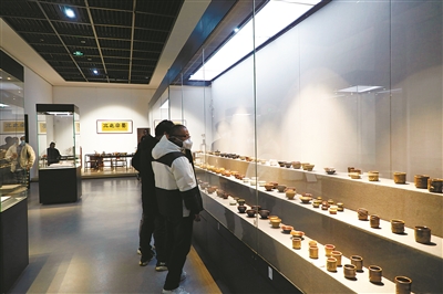 近日,“婺窑之光——国家级非遗婺州窑精品展”在省博物馆孤山馆区·浙江西湖美术馆展出。展览较为全面地展示了婺州窑陶瓷烧制技艺代表性传承人、中国工艺美术大师、浙江工匠陈新华及其徒弟创作的作品。这些作品将传统和创新完美结合,既有古代婺州窑陶瓷造型风格和釉色特征,又具备现代鲜活艺术元素。该展览将持续到3月28日。图为“千杯万盏”展区。