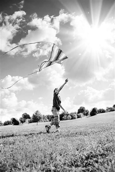 梦,总是在空中升腾,蓝天白云,风筝朵朵,天空是五彩的,风筝也是五彩的。醒来的时候,我会找出我的风筝,在丝绵纸上用彩笔描出一道道的颜色,把它变成蜻蜓,变成蝴蝶,变成鹰和鸟,变得活灵活现,从此,我的风筝放在天上,总是比别人的好看。
