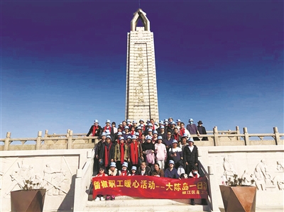 本报讯 记者潘仙德报道 2月14日,由台州市椒江区总工会组织的200名外来职工在感受大陈岛等地的自然优美风光外,还参观了红色教育基地,接受革命传统教育。