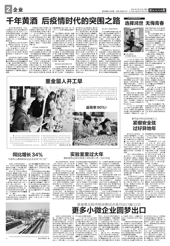 | 2月18日,位于台州温岭市东部新区的浙江泰福泵业股份有限公司迎来了节后开工的第一天,得益于政府和公司的就地过年号召,原先全厂工人600人,开工首日返岗员工达500多人,开工率达90%左右。 浙江泰福泵业股份有限公司是一家专业生产节能水泵的出口型企业,去年创产值4亿多元,在温岭的东部新区、松门的东南工业区拥有生产基地,产品远销非洲、北美洲市场。2021年,公司的愿景目标是实现5亿元的销售收入。目前,公司的生产订单已经排到了4月份,有望实现一季度“开门红”。通讯员江文辉 摄 |