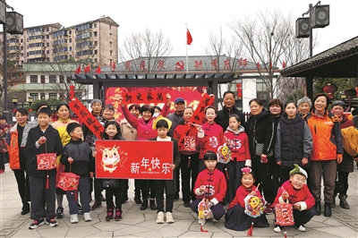 昨日,在湖州市德清县乾元镇东郊社区远教广场上,当地市民和外来居民合影留念,共迎元宵佳节。