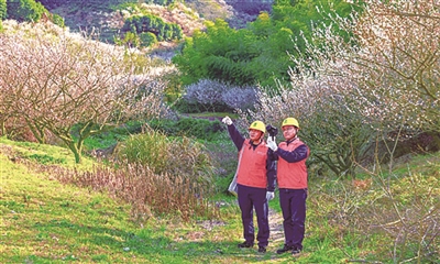 近日,绍兴市上虞区供电公司丰惠供电服务队电力工人在东溪村巡线。春耕春灌即将到来,服务队进村入户开展电力安全和技术帮扶,利用红外测温仪、无人机等设备,开展电力设备巡视排查,消除安全隐患,确保春耕用电无忧。
