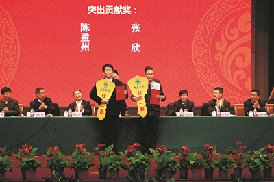 本报讯 通讯员王江红报道 3月8日,在花园集团2021年工作会议上,花园集团为员工陈盈州、张欣颁发“突出贡献奖”,奖励他们位于金华东阳市南马镇花园村中华城三室两厅商品房各一套,每套面积达147.64平方米,以表彰他们为企业高质量发展作出的突出贡献。