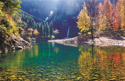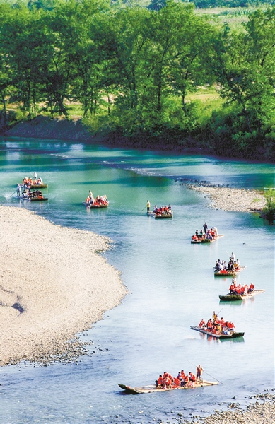仙居母亲河永安溪呈叶脉状遍布仙居全域,水质清澈见底,脱俗雅致,沿着母亲河漂流而下,两岸翠竹掩映,绿树成荫,描绘了一幅“青山碧水画中游”的水墨画卷。