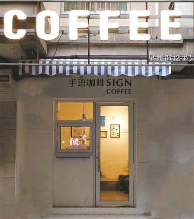 小小的门店,清爽的装修。近日,记者走进位于杭州市西湖区星洲街12号的SIGN COFFEE(手语咖啡)店,只见两名咖啡师正在忙碌着,空气中飘着咖啡的醇香,屋里却没有普通咖啡馆里常有的雅乐声。吧台上竖着一张小牌子,写着:“您说话,我听不见,请用笔谈。”墙上贴着简单的手语知识。