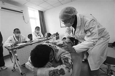 这是一项医学生专业学科知识与技能创新的竞赛,参赛学生除了无纸化上机理论竞考外,还比试了中医诊断技能、中药知识与技能、方剂知识与运用、针灸技能、推拿技能、急救技能等专科内容。