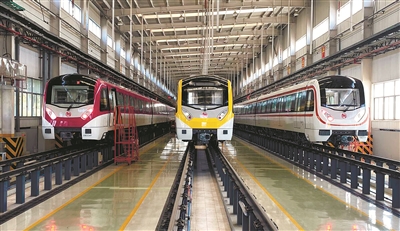 杭州地铁工作人员介绍,杭州地铁3号线计划2022年建成,列车着正黄色。地铁8号线一期工程目前已完成热滑试验,进入综合联调阶段,计划今年建成,列车颜色采用红色系列中的绛红色。地铁9号线一期工程也计划今年建成,列车颜色采用橙系列中的绛橙色。丁岚 摄