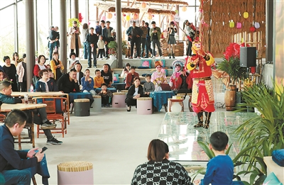 衢州市衢江区莲花乡村国际未来社区于2020年9月开园。这个乡村未来社区创建范围约16.8平方公里,坚持“人本化、田园化、科技化、融合化”导向,依托物联网、人工智能、5G场景应用,融合古村、农耕、文创、康养、研学等元素,着力推动美丽乡村向美丽社区转变,积极探索乡村未来社区的发展模式。图为3月27日,游客正在未来社区里的大舞台观看戏曲表演。