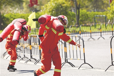 比武设置了背负空气呼吸器5000米跑、绳索攀爬、10层负重登楼、400米救人疏散物资、800米游泳等项目。经过两天半的激烈角逐,柯城、开发区、柯山消防救援大队分别获得此次比武大队团体总分前三名。