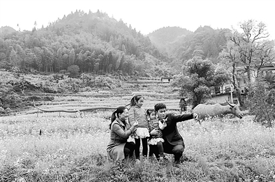 图为游客正在长虹乡台回山景区拍照留念。