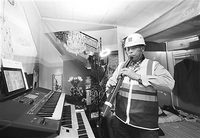“工地嘛!一般都比较枯燥,白天的工作强度大,缺少可以缓解工作压力的文体活动,所以我就把兴趣爱好融入工作间隙,让工友们随意点歌跟唱。看着他们快乐的神情,听到他们高亢的歌喉,我也感到十分满足。”王祝林说,他一直秉持“音乐健身”的理念,在自己通过演奏提高肺活量的同时,也让工友们跟着旋律一起活动起来,轻松了身体,也放松了心灵。