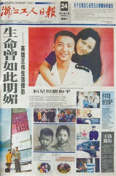 2001年4月1日,一架美军EP-3侦察机在中国海南岛东南约70海里的专属经济区上空,与王伟驾驶的战斗机相撞,飞行员王伟跳伞,永远留在了海天之间。