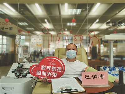 | 夏丁辉在献血。 |
