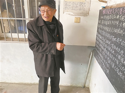 | 王朝宝刚在老年活动室出完板报。见习记者李国峰 摄 |