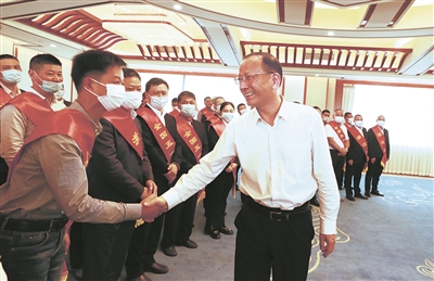 本报讯 记者曾晨路报道 今天,我省隆重举行2021年庆祝“五一”国际劳动节暨表彰劳模先进大会。昨日,省人大常委会副主任、省总工会主席史济锡前往驻地看望受表彰的劳模先进,与他们亲切握手、交谈,向他们致以节日的问候。