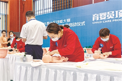 据了解,该活动贯穿2021年全年,比武项目基本覆盖当地主要产业,将有近万名职工参与。当天,在技能比武区,育婴员项目比武火热开展,20名育婴师一字排开,用专业技能现场大秀“哄娃”绝活;在技能展示区,机器人服务、无人机巡查、智能纸箱制作、文创产品雕琢等高新产品让围观人群赞叹不已。通讯员陈标 摄