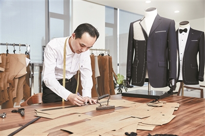 一件西服细分起来有300多道工艺,每一道都有门道,都可以动脑筋优化提升。这些年,我们利用废弃的裤子拔裆机改造出“贴体插肩袖分烫定型机”,大大提高了工作效率;我们将设计变型推板法应用到职业女装的设计中,使产品返修率大大降低,职业西装行业内平均返修率是1.5%到2%,而培罗成的返修率仅在0.8%到1%。在我看来,服装制版要勤于思考,最好的设计永无止境。