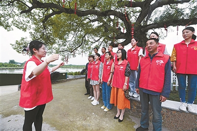 昨日,在湖州市长兴县林城镇北汤村的百年古树下,基层党员和村民一起参加乡村红歌赛。