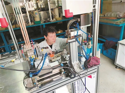邢伟勇并没有停止前行的脚步,半年后,通过不断学习实践,又将原型机实施升级改造,这套自动化设备工作效率比原来的手工设备提升了将近4倍,产品品质得到了更充分的保障,还改良了操作方式,新员工可以迅速上手操作。