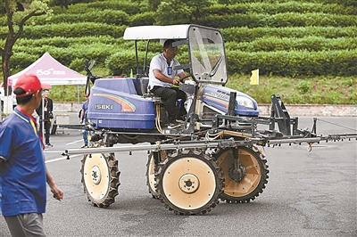 5月17日~18日,金华市举行首届农业职业技能竞赛。来自各县市区150余名选手参加茶叶加工、动物疫病防治、动物检疫检验、农产品质量安全检测、农机修理、农机驾驶操作、农作物病虫害防治等竞赛项目。图为一名竞赛选手在金华市示范性实践基地里,进行自走式喷杆喷雾机植保模拟作业。