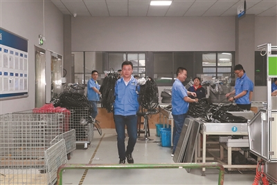 | 新工友们在“森源电缆”生产车间劳动。记者邹伟锋 摄 |