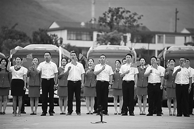 近日,金华市交投公交集团站场,公交集团党员职工进行“学党史、颂党恩、跟党走”快闪活动。