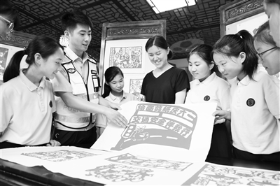 图为近日,民警在杭坪镇中心小学与学生们一起绘、剪交通安全作品,让孩子们在制作剪纸的同时,学到更多的交通安全常识。