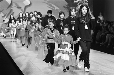 通讯员王国海、张苗摄影报道 5月28日,第四届KFIP全国儿童时尚文化周在宁波老外滩开幕。开幕式首场发布秀为浙江纺织服装职业技术学院华羽金顶现代学徒制班“中国红”童装创意作品发布会。