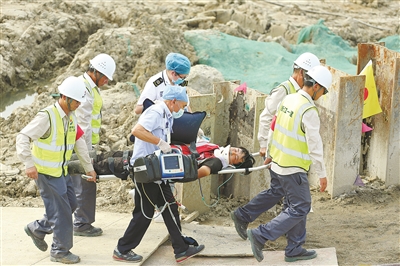 在第20个全国“安全生产月”到来之际,5月31日下午,在省一建建设集团阿里巴巴达摩院项目现场,浙建集团吹响了2021年“安全生产月”活动先锋号,并开展建筑施工基坑坍塌应急救援演练直播活动。17家省属国有企业领导,浙建集团下属子公司安全生产负责人、余杭区项目负责人、项目一线管理人员代表近300人参加现场活动,13800余人通过直播平台观看了这场演练。通讯员杨忆 摄