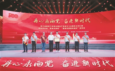 本报讯 记者曾晨路报道 昨日,我省教职工庆祝中国共产党成立100周年文艺汇演暨教育系统“最美志愿者”“最美志愿服务组织”发布会在杭州举行。广大教职工代表在此重温党的光辉历史,赓续红色根脉,以奋发昂扬的姿态,为全省教育事业和社会公益事业,奉献青春力量。