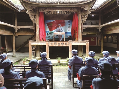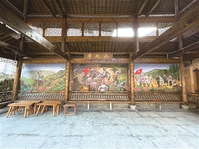 位于村口的安岱后红色教育接待中心,总投资100余万元,涵盖游客接待、运输服务、红军商店、红军影院、休闲书吧等多功能于一体。
