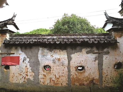 在枫坪乡高寮村岩坑自然村关帝庙内外墙上,为红军队伍路过时书写的。外墙字迹为:“工农群众一致团结起来打土豪分田地。浙西南红军游击队第一支队。”