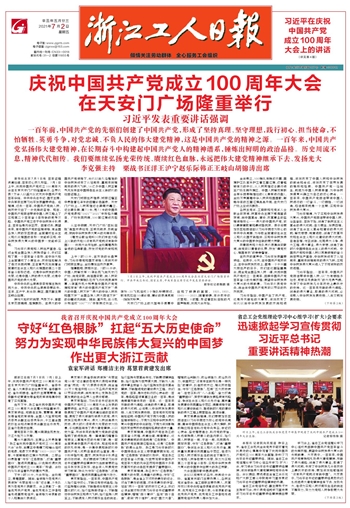 当天下午,浙江省庆祝中国共产党成立100周年大会在嘉兴市隆重举行。袁家军讲话,郑栅洁主持,葛慧君、黄建发等省党政军领导,全国人大监察和司法委员会副主任委员车俊、十三届全国政协社会和法制委员会副主任乔传秀,正省级老同志出席。