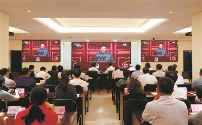 | 昨日上午,省总工会机关全体党员干部集中观看了庆祝中国共产党成立100周年大会直播。 记者邹伟锋 摄 |