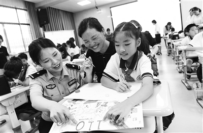 近日,东阳市公安局南市派出所联合东阳市南市街道综合治理办公室,在辖区大联小学举办了一场“童心协力、反诈同行”亲子书画比赛。从一至六年级挑选出来的48名“小画家”根据民警对诈骗案例的讲述,与家长在现场作画,并请专业美术老师当场评选出一、二、三等奖进行颁奖,进一步提高了广大师生和家长的反诈意识。