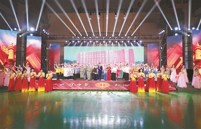 | 展演最后,全场齐声合唱《没有共产党就没有新中国》。记者邹伟锋 摄 |