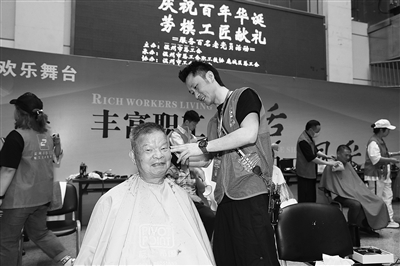 活动现场,理发、家电维修、保健按摩、推拿、刮痧、爱心早餐等多个服务摊位一字排开,身穿红色马夹的劳模工匠技能大师和徒弟们以精湛的技艺为全市百余名老党员和附近社区群众提供服务。现场的老党员们都曾是活跃在该市各个战线的先锋骨干,其中一位老党员已93岁高龄,党龄有73年。