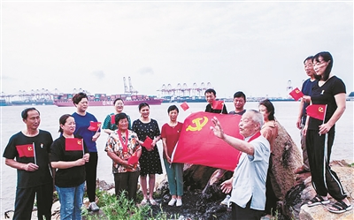 近日,舟山市嵊泗县洋山镇组织开展“追忆时代记忆 喜看家乡变化”主题活动。有着50年党龄的老党员郑成汉,在家门口的上海国际航运中心洋山港码头,向社区干部、年轻党员讲述洋山深水港建设历程,以实例阐述中国共产党伟大的建党精神。